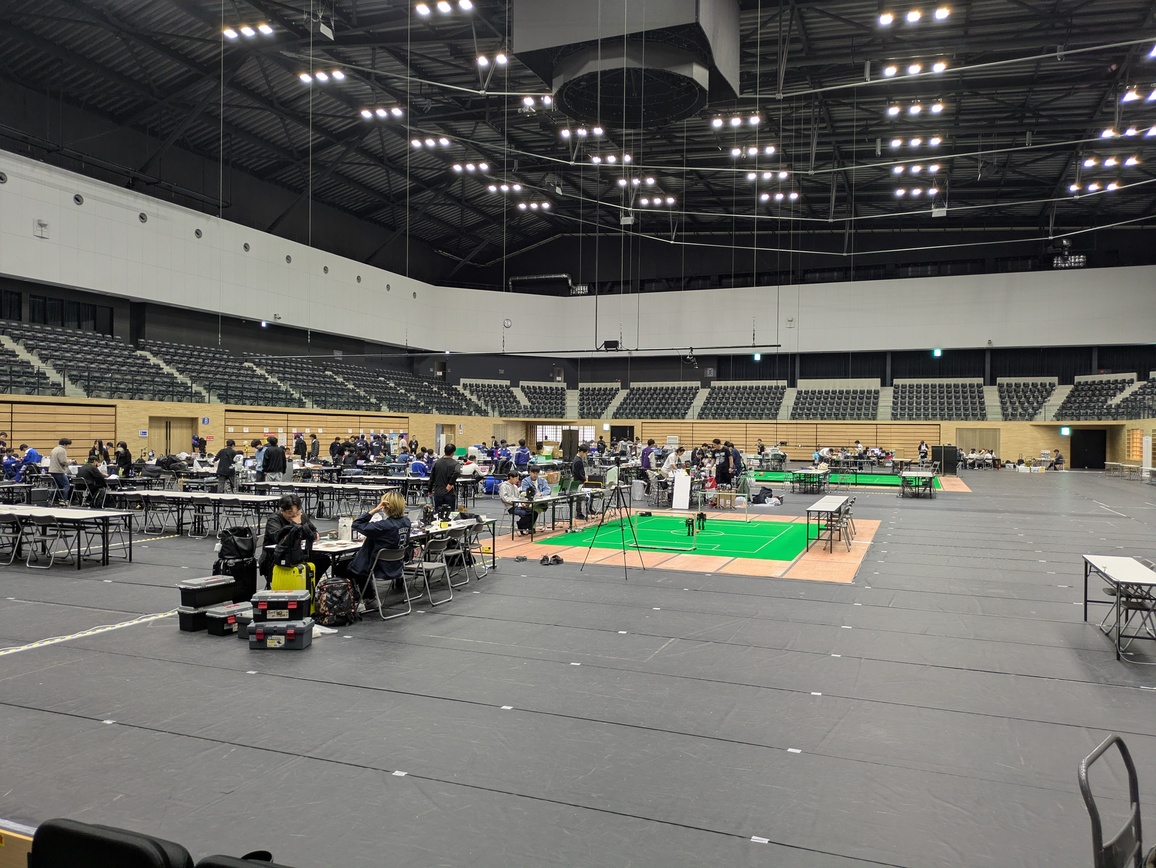 セットアップでは、ロボットとパソコンが上手く通信できるかを確認したり、ロボットの制御を調整したりして、明日から開催される本番に向けて準備を行いました!
