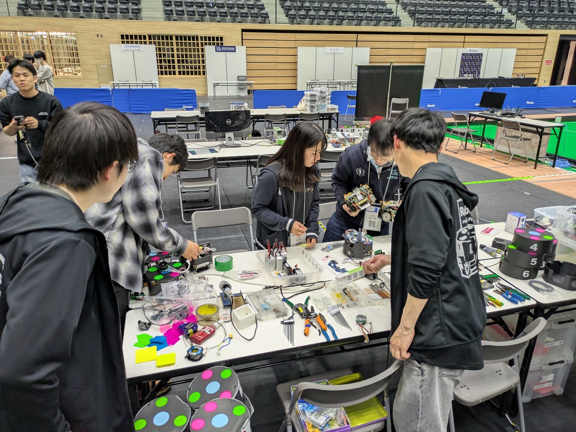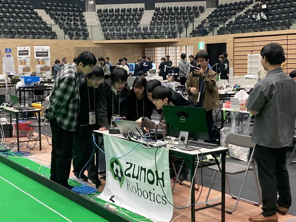 2戦目のZUNOH Robotics戦では,シュートを相手チームの守備に何度も阻まれ厳しい展開が続きましたが、中盤で取った1点を守り切り,1-0で勝つことができました! また,初出場のZUNOH Roboticsのメンバーさんに機体や基盤のお話などをたくさんしていただきました!